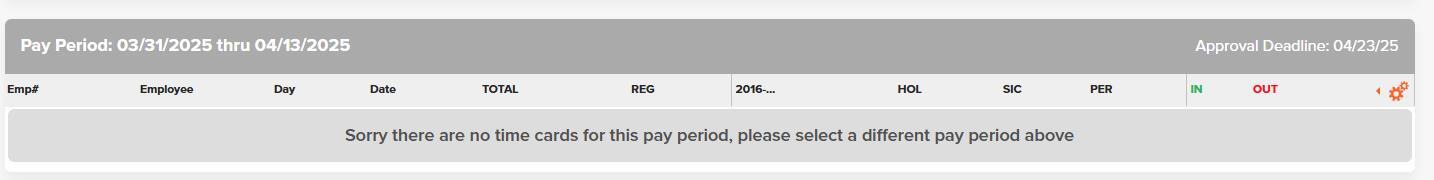 Once you are in the correct pay period, you will see the approval deadline displayed clearly on the time card.