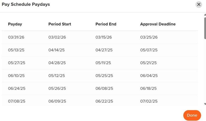 A full list of upcoming pay days will appear.