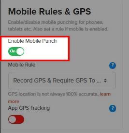 - Step 4: Under Mobile Rules & GPS, toggle Enable Mobile Punch on.
