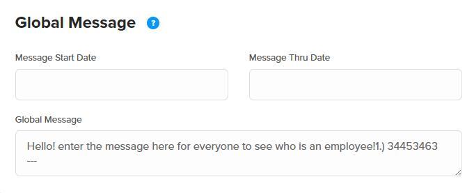 - Global Message: Enter the message you’d like displayed to all employees as they clock in.