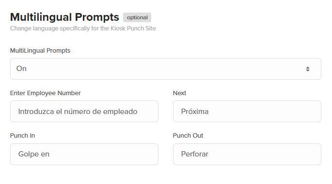 - Multilingual Prompts: Turn this on if you’d like to translate time clock prompts into another language.*
